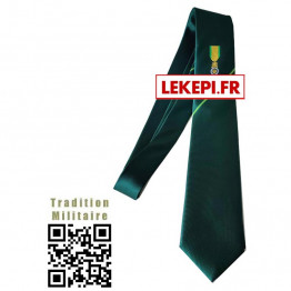 Cravate de la Médaille Militaire pour ancien combattant, cravate verte avec liserés jaune et vert, effigie de la médaille militaire tisséé sur la cravate.
