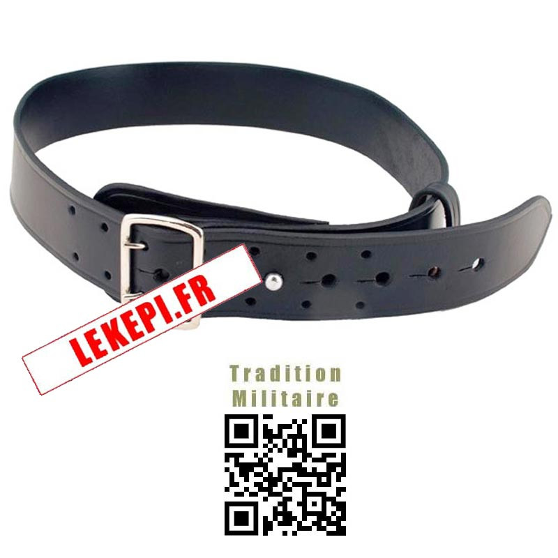 Ceinturon cuir noir avec deux ardillons chromés - 45 mm de large.